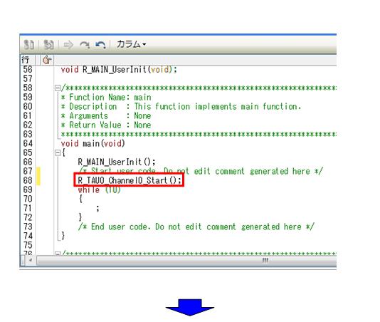 r_cg_timer_user.cが表示されるので,以下の記述をコピーして下図の位置にペーストしてください。 |