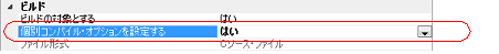 [ビルド]カテゴリの[個別アセンブル・オプションを設定する]プロパティで[はい]を選択すると,メッセージ ダイアログがオープンします。
