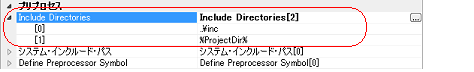 インクルード・パスの設定は,[プリプロセス]カテゴリの[Include Directories]プロパティで行います。