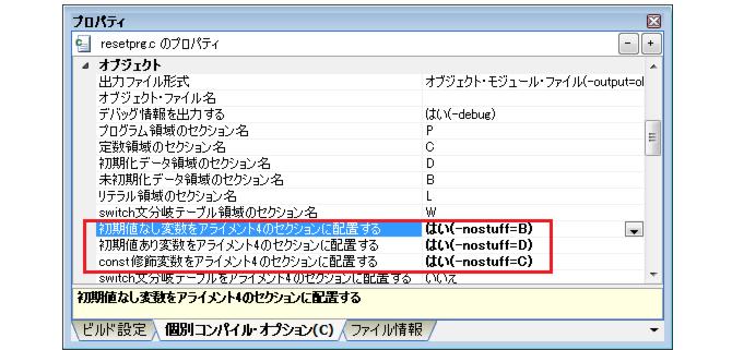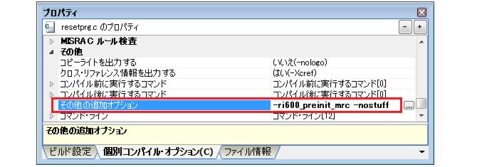 コンパイラ,アセンブラ,リンカなどに対するオプションを設定します。