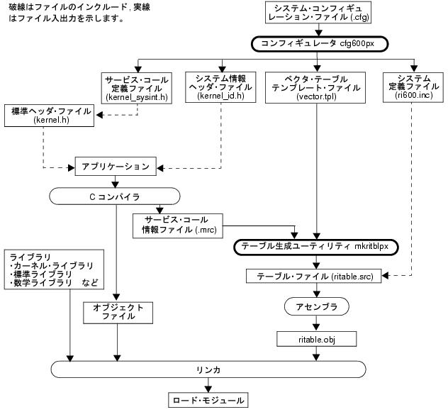 アプリケーションのコンパイルによって,アプリケーション内で使用しているサービス・コール情報がサービス・コール情報ファイル(.mrc)に出力されます。mkritblpxは,これらのサービス・コール情報ファイルを入力として,システムで使用するサービス・コールだけがリンクされるようにサービス・コール・テーブルを生成します。
