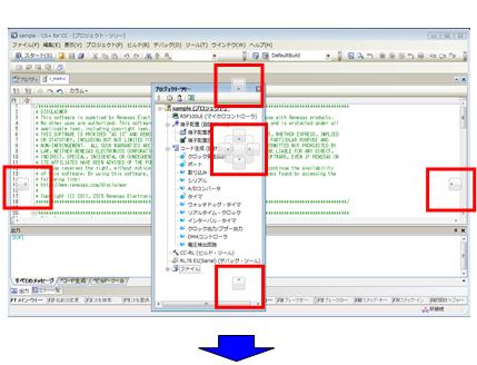 レイアウト(パネルの配置情報)は,メニュー・バーの「表示」→「ドッキング・レイアウトの保存と復帰」で,デバッグ・ツール接続前/接続後のそれぞれに対して,4つの状態を保存することができます。