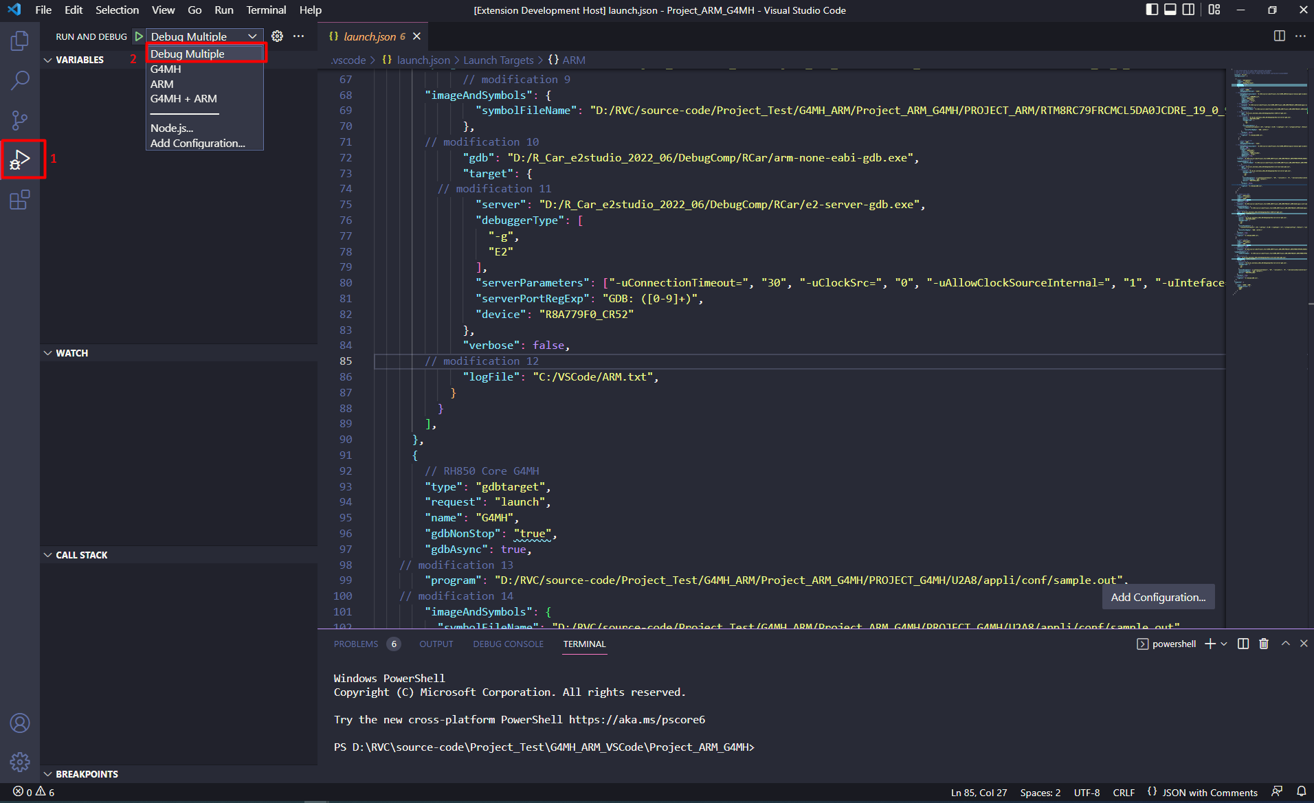 Support debug multicore with multi-core G4MH for R-Car S4 device (PE0, PE1) or device RH850 (PE0,PE1,PE2,PE3) on VS code.