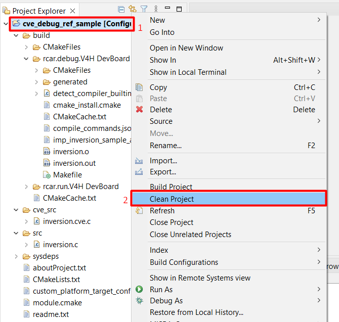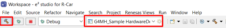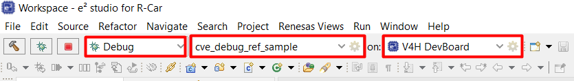 Select Launch Configuration (the name of the project is imported), and Launch Target “V4H DevBoard” on the toolbar.